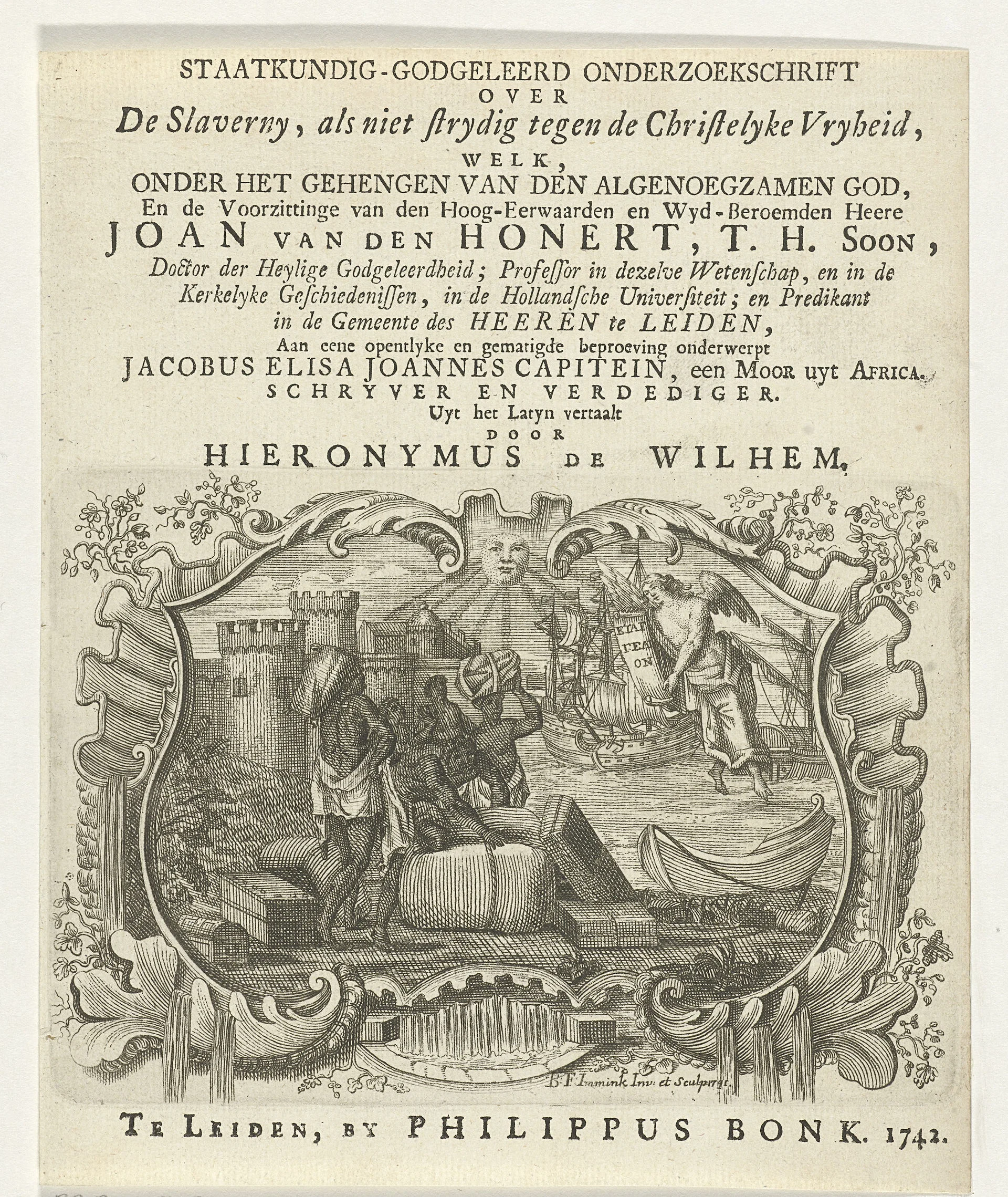 Title page of Capitein's dissertation: "De servitude, libertati christianae non contraria" or "Servitude, Christian Liberty non-Contrary"